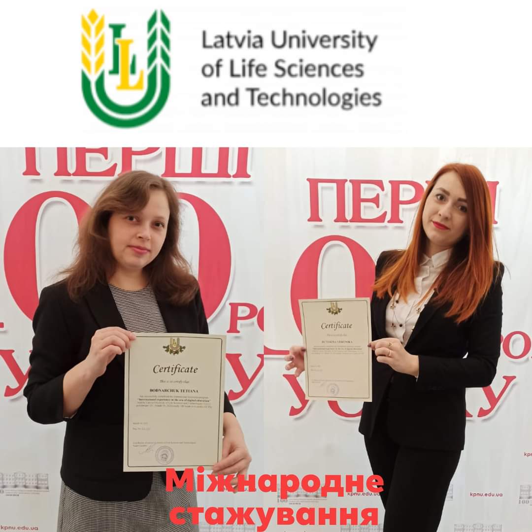 Протягом 15 лютого – 19 березня 2021 р. викладачі кафедри к. е. н. Тетяна Боднарчук та к. е. н. Вероніка Буторіна пройшли міжнародне науково-освітнє онлайн-стажування та підвищення кваліфікації на тему «Зарубіжний досвід в епоху цифрової освіти» обсягом 180 годин (6 кредитів ECTS) на базі Латвійського університету наук про життя і технологій (м. Єлгава, Латвія).