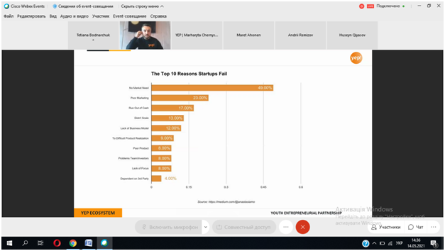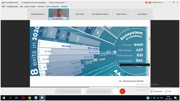 14 травня захід був відкритий для усіх охочих. Під час онлайн-зустрічі були представлені цікаві та актуальні доповіді фахівців із США, Естонії, України про запуск стартапів на базі університету, тренди українського стартап-руху, застосування дизайн-мислення у підприємництві, валідації бізнес-ідей.