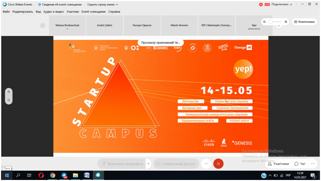 14-15 травня в рамках проєкту «Підприємницький університет» викладачі кафедри економіки підприємства д.е.н., професор Ящишина І.В. та к.е.н., старший викладач Боднарчук Т.Л. взяли участь у Міжнародній конференції «Startup Campus 2021», що була організована стартап-інкубатор Yep! спільно з Міністерством цифрової трансформації України, Генеральним консульством України, Дія. Бізнес, компанією Genesis тощо.
