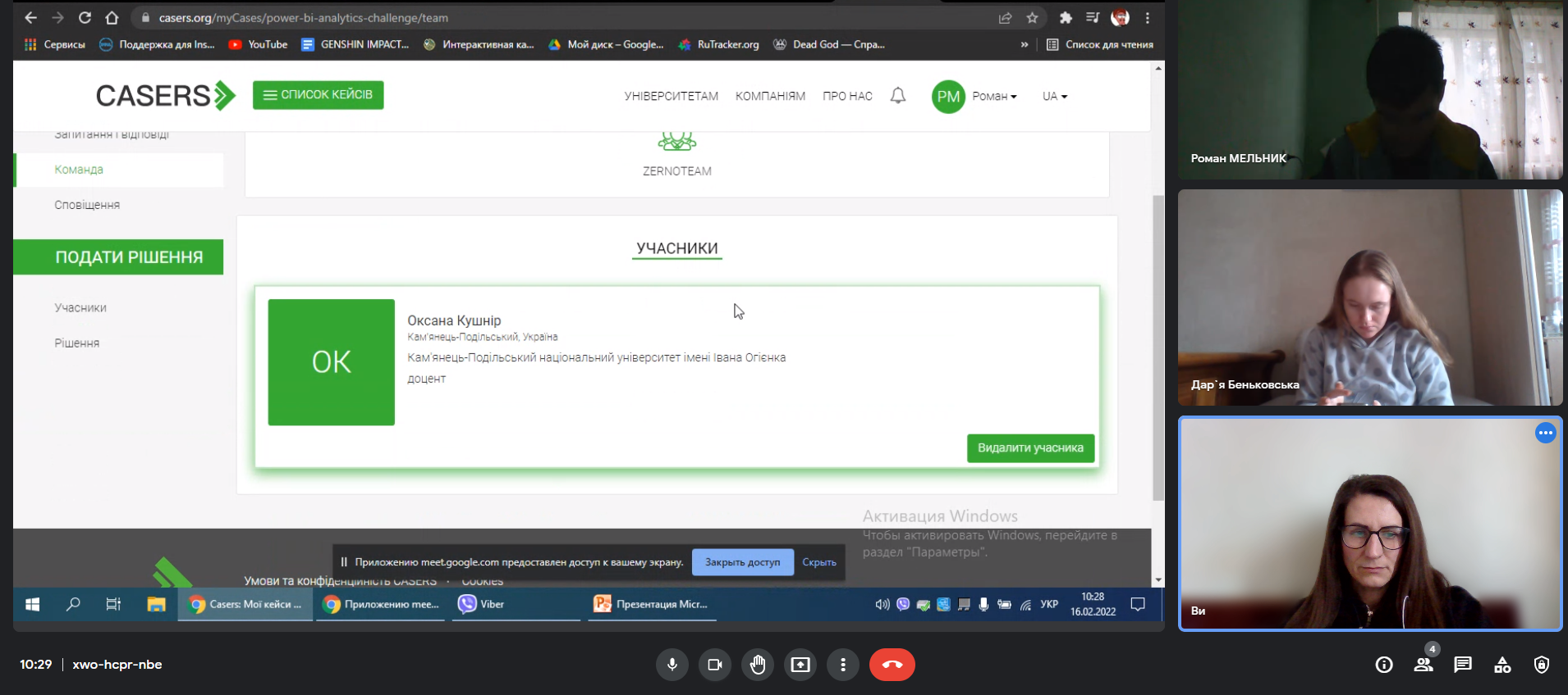Кафедру представляла команда ZernoTeam, до складу якої увійшли: Роман Мельник (капітан), Дарʼя Беньковська, Анна Кавунець та доцент кафедри – Оксана Кушнір.