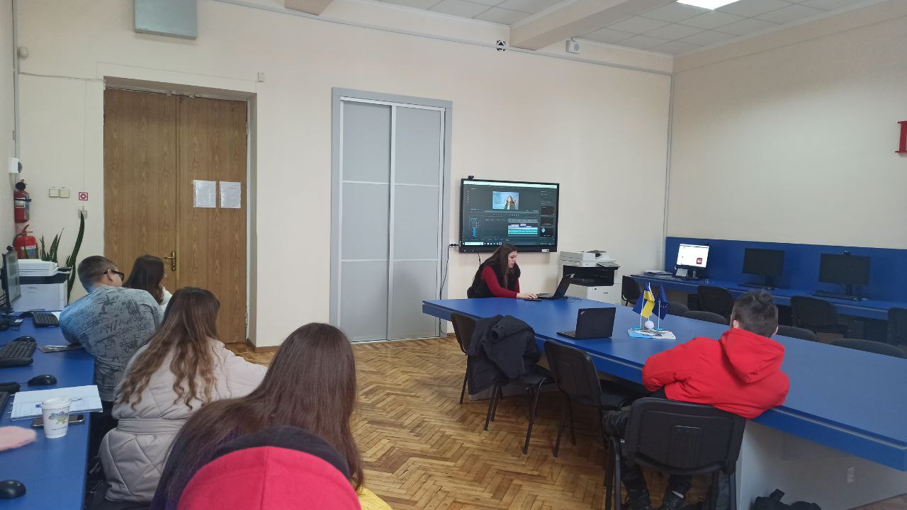 Молодь ознайомилась із прийомами обробки звуку, зображення, тексту та фону під час монтування цілісного відеопродукту із використанням сучасного програмного забезпечення.