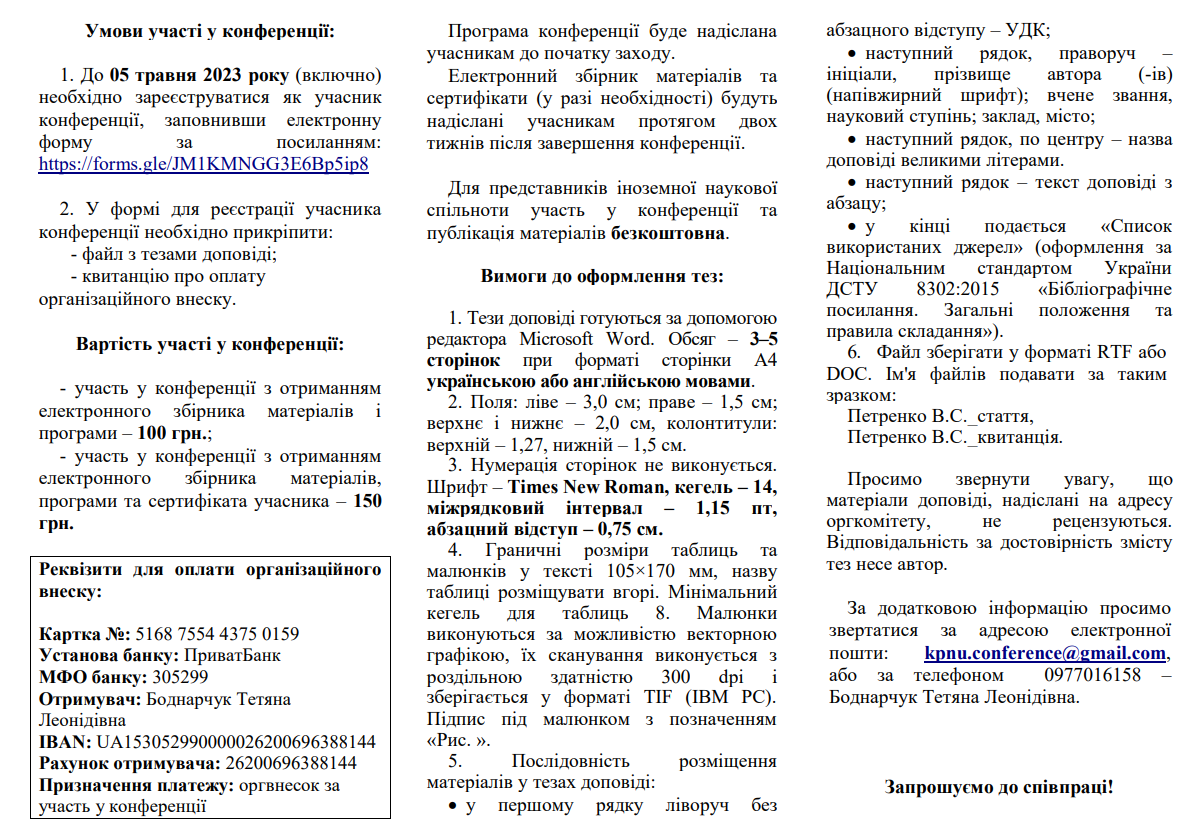 Дедлайн подання матеріалів – 05 травня 2023 р.