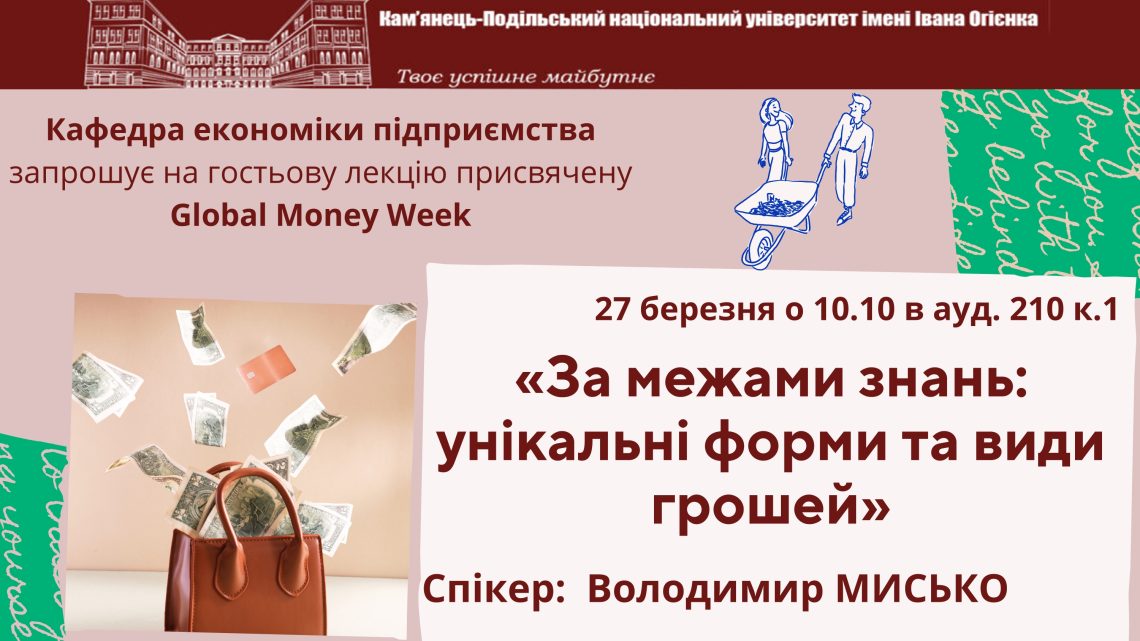 Запрошуємо на гостьову лекцію 21.03.2024 / Кафедра запрошує усіх охочих розширити свої знання з метою пізнання історії грошей та розбудови впевненого фінансового майбутнього! Хто: спікер Володимир МИСЬКО Де: Центральний корпус університету, ауд. 210 Коли: 27 березня (середа), о 10.10