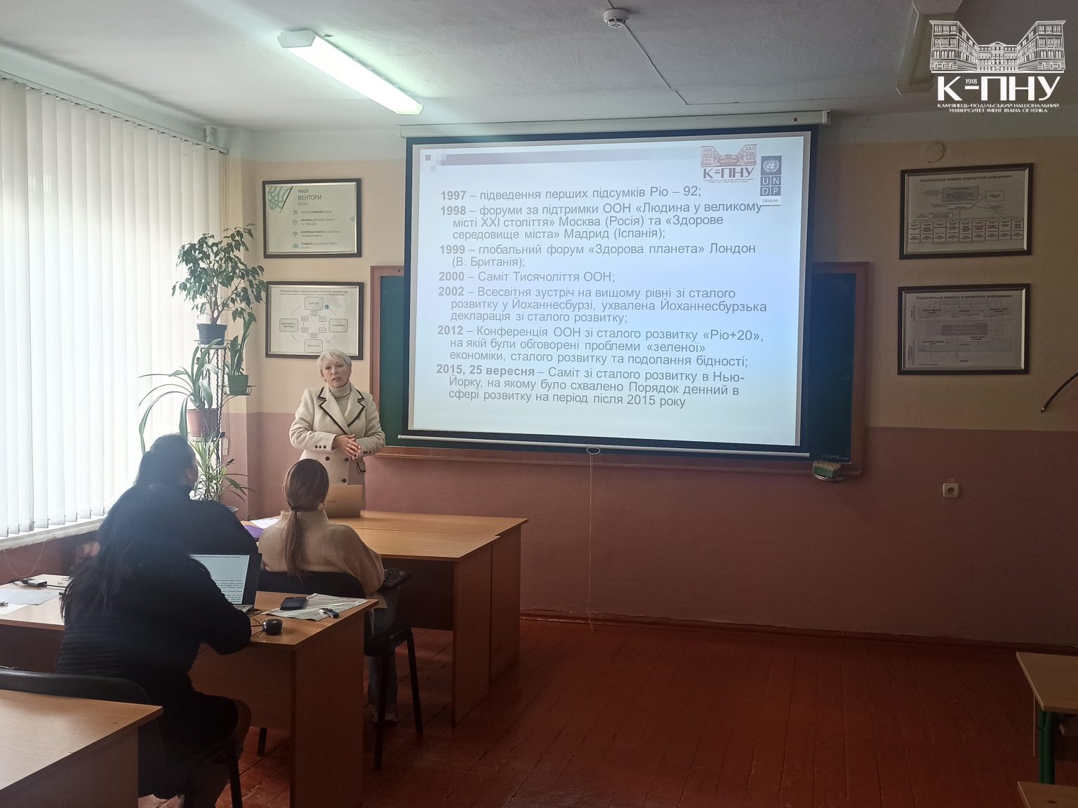 30 жовтня в кабінеті сталого розвитку К-ПНУ відбувся між кафедральний науково-практичний семінар «Сталий розвиток України: реалії та перспективи», до якого доєдналася й кафедра економіки підприємства.