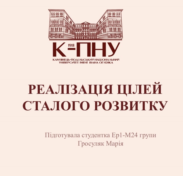 Здобувачка другого (магістерського) рівня вищої освіти спеціальності 051 Економіка Марія Гросуляк підготувала цікаве дослідження на тему: «Реалізація цілей сталого розвитку підприємствами міста Кам’янець-Подільського». Студентка проаналізувала 35 суб’єктів господарювання міста, серед яких лише в трьох є програми зі сталого розвитку. Авторка дослідження розповіла про кейси кожного із цих трьох підприємств.