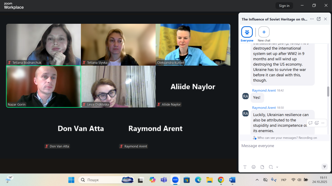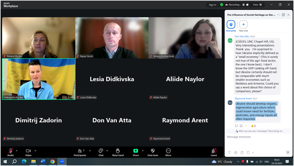 У форматі круглого столу, присвяченого впливу радянської спадщини на розвиток української економіки, науковиця презентувала доповідь на тему «Historical determinants and challenges of Ukraine’s transition to new conditions of foreign trade». Захід об’єднав зацікавлених науковців, що сприяло динамічній дискусії, яка охопила проблематику глобальної турбулентності та місця України у системі нового світового порядку, модернізації сільського господарства з точки зору стимулювання експортного потенціалу, відпливу мізків та подальшого науково-технологічного розвитку країни тощо.