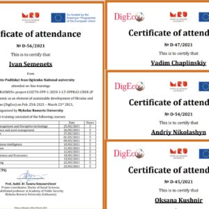 Протягом місяця викладачі кафедри мали нагоду пройти стажування та перейняти досвід європейських партнерів по проєкту «Діджиталізація економіки як елемент сталого розвитку України та Таджикистану» (618270-EPP-1-2020-1-LT-EPPKA2-CBHE-JP). Університетом Миколаса Ромеріса (Литва) було організовано он-лайн тренінги.…