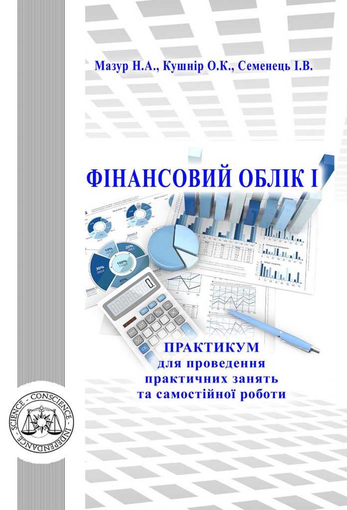 Фінансовий облік І : Практикум для проведення практичних занять та самостійної роботи. Укладачі Мазур Н.А., Кушнір О.К., Семенець І.В. Кам’янець-Подільський : Видавець Ковальчук О.В., 2020. 80 с. У посібнику викладено методику обліку активів а саме: основи побудови бухгалтерського обліку; облік грошових коштів; облік дебіторської заборгованості; облік основних засобів; облік нематеріальних активів; облік запасів; облік виробничих запасів та палива; облік витрат виробництва; облік готової продукції; облік витрат майбутніх періодів. |